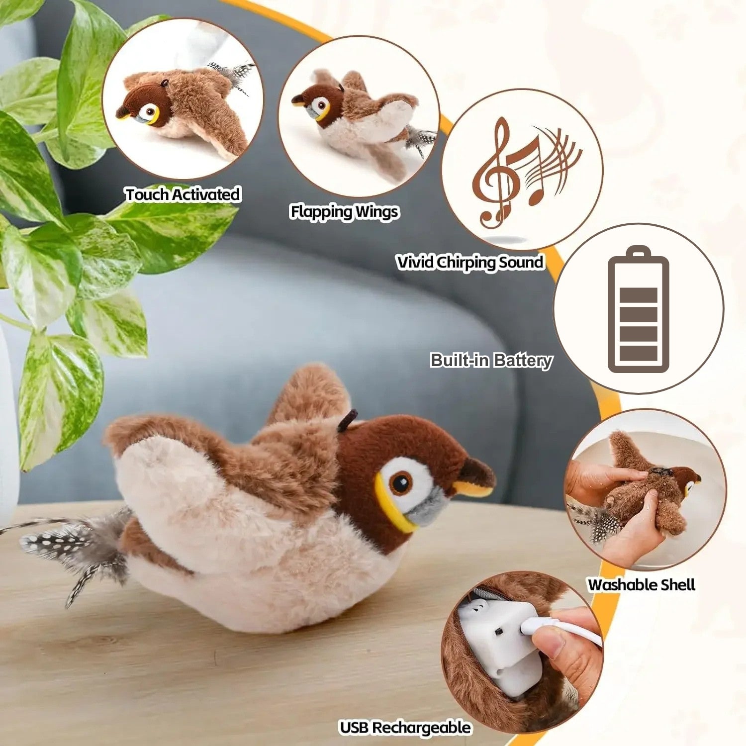Introducing The Official - Flappy Bird: a lifelike, catnip-infused toy that flaps its wings like a real bird, captivating your cat's hunting instincts. Durable and rechargeable, it's designed for endless feline fun and engagement.